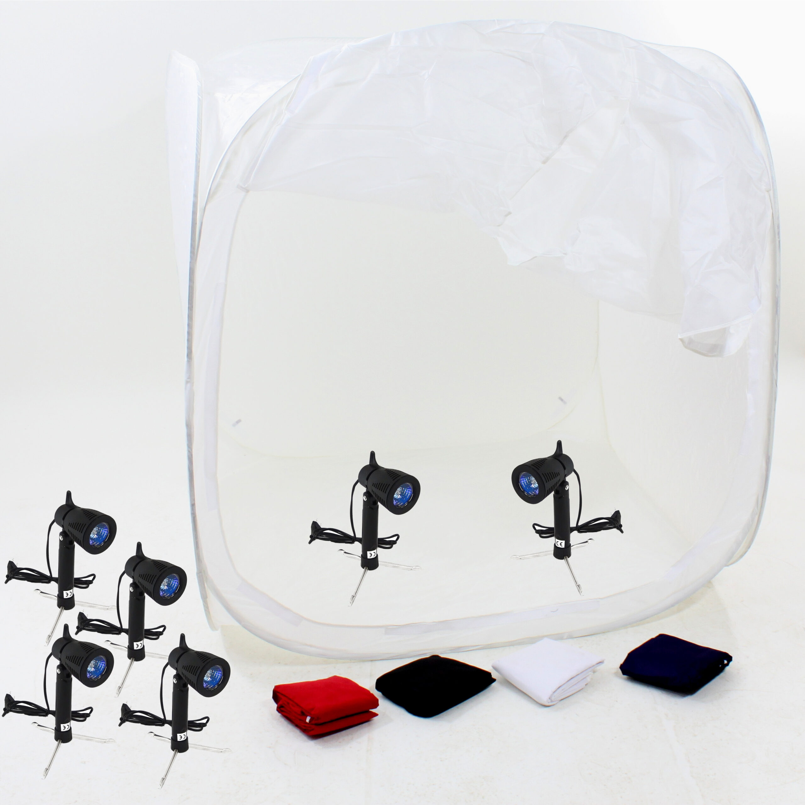 DynaSun PRO PB1 XXL 150x150x150cm Faltbares Lichtwürfel Lichtzelt Cubelight Fotostudio Fotozelt mit 6 Fotolampe, Tisch Stativ und 4 Hintergrund