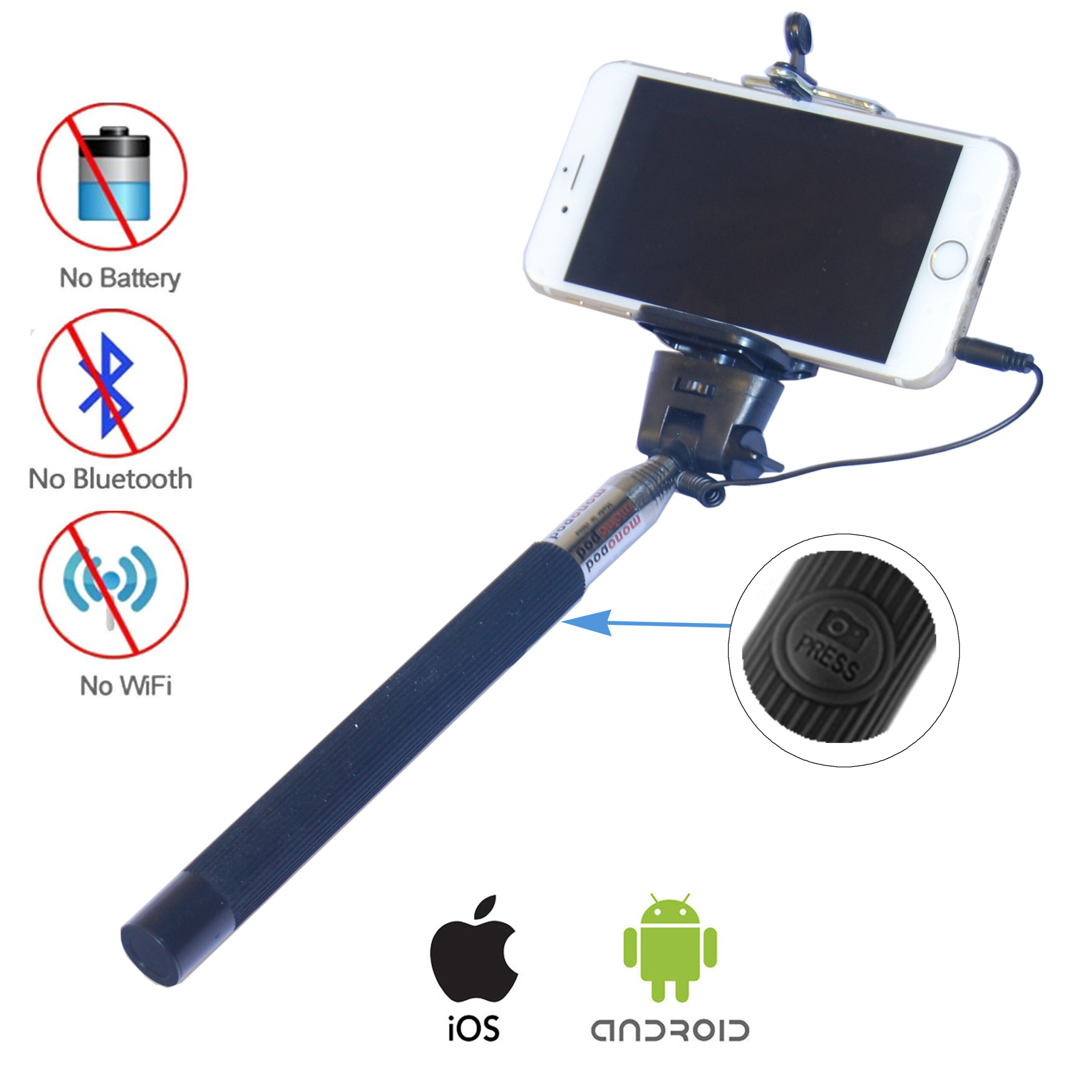 Selfie Stange Arm Stick Verlängerungsarm Einbeinstativ Teleskop Stab DynaSun Z07S mit Knopf Kabel für IOS Android Handy Monopod Smartphone Beschreibung Selfie ist so IN und COOL. Unser neuestes Produkt DynaSun Z07S ist so klein und so leicht. Es lässt sich überall mitnehmen, in der Tasche, im Rucksack, einfach genial. Damit können Sie sich überall und in jedem Moment fotografieren. Halten Sie die schönsten Momente Ihres Lebens fest, mit unserem DynaSun Z07S. DynaSun Z07S hat eine universal 1/4″ Schraube. Fast alle Digitalkameras lassen sich darauf aufdrehen. Auch Ihr GoPro Hero und andere diverse Actioncams mittels optionalem Adapter kommen nicht zu kurz. Noch toller ist aber, wir liefern noch eine Smartphone Klammer dazu. Mit dieser Klammer können Sie Ihre Smartphones fest klammern. Nutzen Sie dieses Stativ, um Fotos oder Videos von sich selbst und Ihren Bekannten zu machen. Genießen und Festhalten ist das Motto von unserer Selfie DynaSun Z07S. Verpassen Sie es nicht! Technische Daten * Durch den Selbstauslöser werden Selfie und Gruppenfotos Machen einfacher denn je!!! * Plug&Play * Kein Batterie, Kein Bluetooth, Kein Wlan notwendig * Einfache Funktion durch Klinkenstecker * Kit Einbeinstativ mit verstellbarem Stange zum Selfie * Leicht, kompakt, leicht zu tragen * Einfache Montage * Tragkraft von ca. 500g * Länge zusammengeschoben des Teleskoparm: nur 23,5cm * Länge Teleskoparm mit Adapter: 107cm * Perfekt geeignet für Unterwegs wie z. B. im Urlaub, auf Festivals oder Partys * Universal-Adapter für Smarphone mit einer Breite zwischen 5,50cm und 7,00cm * Für Android und IOS * Ideal für unterwegs * Perfekte Bedienung * Top-Qualität * Integrierter Knopf * Kein Bluetooth, kein Aufladen der Stange, einfach den Klinkenstecker anschließen und sofort Fotos schießen.