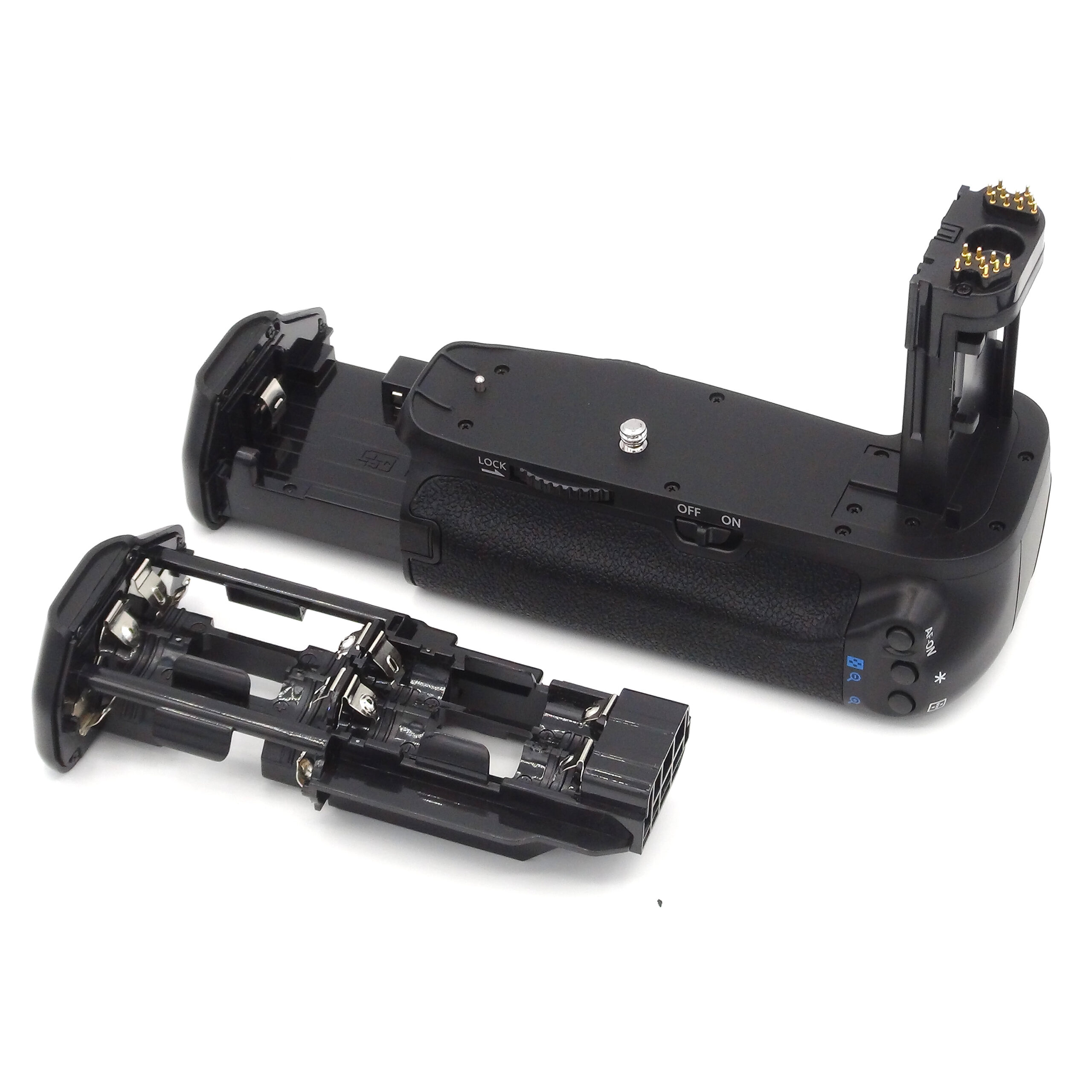 Profi Batteriegriff Battery Grip Akkugriff Handgriff DynaSun E16 für EOS 7D Mark II wie der BG-E16 BGE16 mit extra Batteriefach für AA Batterien Beschreibung Der Batteriegriff DynaSun E16 für EOS 7D Mark II ermöglicht Ihnen besonders bei Aufnahmen im Hochformat eine optimierte Handhabung. Die Kamera lässt sich deutlich besser halten und kann dank der rutschsicheren Grifffläche nicht mehr aus der Hand gleiten. Der Batteriegriff fasst eine oder zwei Lithium-Ionen Akkus nicht im Lieferumgunfang, so läßt sich die Energiekapazität, welche der Kamera zur Verfügung steht, verdoppeln und vermeiden lästiges Akku Wechseln wie z.B. bei Fotoshootings oder Modeshows. Dadurch sparen Sie auch Zeit und Stress und können durchgehend fotografieren. Ausserdem haben Sie auch die Möglichkeit den Griff auf ein Stativ zu befestigen. Der Griff besitzt Auslöseknopf, der bei Hochformataufnahmen besser zu erreichen ist als der Auslöser der Kamera. Zusätzlich hat der Batteriegriff einen Multifunktionswähler, sowie eine AF-Taste. Diese Bedienelemente erfüllen die gleichen Funktionen wie ihr jeweiliges Pendant an der Kamera. Zum Lieferumfang des Batteriegriffs gehören zwei herausnehmbare Akkuhalterungen, eine für Akku und eine für Mignon-Akkus. Technische Daten * Komfortable Bedienung bei Hochformataufnahmen * Batteriefach für 2x LP- E6/E6N Akku * Betrieb mit 6 AA Akkus bzw. Batterien möglich * Ein-/Aus-Schalter für Vertikalgriff * AF-Start-Punktwahl * AF-Punktwahl * AE-Lock-Punktwahl * Auslöser für Hochformataufnahmen * Hauptwählrad für Vertikalgriff * Verdopplung der Betriebsdauer * Stativgewinde * Öse zum befestigen einer Handschlaufe * Rutschfeste, gummierte Griff-Fläche * Kompatibel mit ein ode zwei LP- E6/E6N Akku * Passend für (Kamera): EOS 7D Mark II