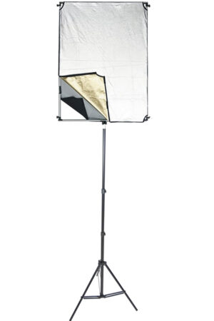 Kit Original Profi Fahne Reflektor Set 4in1 DynaSun WOS2008 60x92cm mit Lampenstativ W803 Stativ mit Flag Flagreflektor in 4 Farben: Golden, Weiß, Silbern, Schwarz